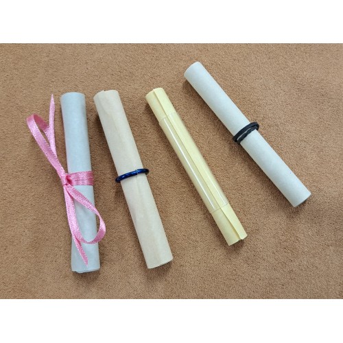 Need a lot of scrolls with a smaller budget? Our "4 x 6 Bargain Blank Rolled Scrolls" are made with our parchment paper - your color choice of paper. They can be used for weddings - school projects - luncheons - party favors - A must when you want group participation or an inexpensive token.