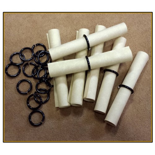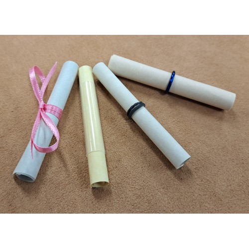 Our "5 x 7 Bargain Blank Rolled Scrolls" are made of parchment paper. Different options are available for how you want to secure these "Bargain Blank Rolled Scrolls".