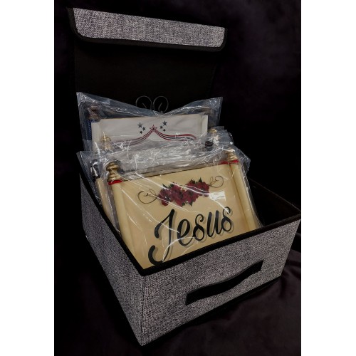 This "Holiday Scroll Plaque Set" was designed so our customers would have a "Scroll Plaque" to display for each season throughout the year. Comes with a storage container to store plaques when the season is over. These can be hung on a wall or placed on a mantel using one of our classy easels.