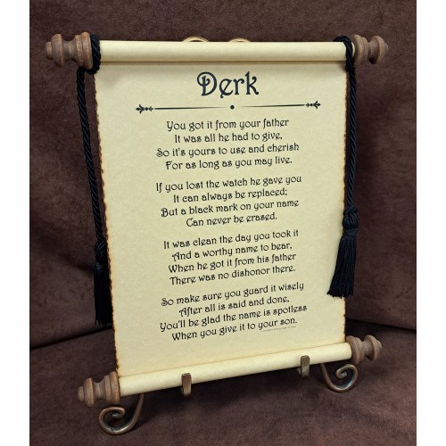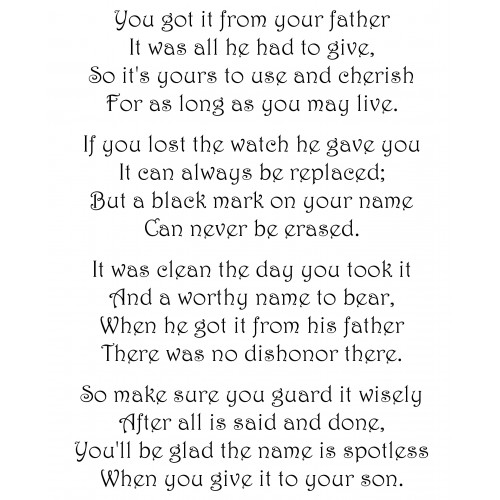 These make great gifts for sons... birthdays, weddings and Father's Day. Display on a wall or on one of our Classy Easels. Bible verse: A good name is rather to be chosen than great riches, and loving favor rather than silver and gold. Proverbs 22:1 - can be added to the bottom if you want.