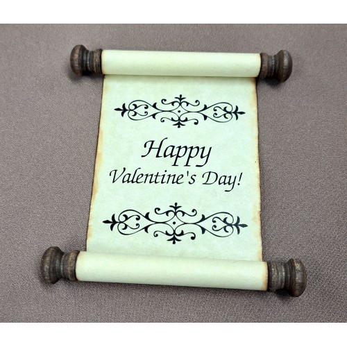 This scroll comes preprinted with the "Happy Valentine's Day" message. The are printed on our gold parchment. . You can pick the color finials and ribbon that you want.