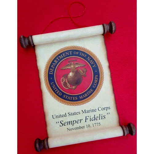 Home » Products » Hanging Scrolls » Scroll Ornaments » Stocked Ornaments » Military Scrolls » Marine Scroll Ornament Marine Scroll Ornament Price: $10.00 Availability: In Stock Qty: Description Displays motto and birthday! Quantity discounts are available.