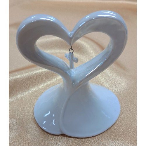 This "Heart with Cross" is made out of porcelian and has a small cross hanging in the center. Makes a great wedding cake topper!