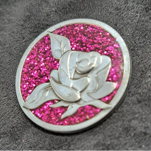 This "LOVE Token" is a metal Sparkle Pocket Token is 1 1/4" round. The sparkle is enamel and can be carried in your pocket.