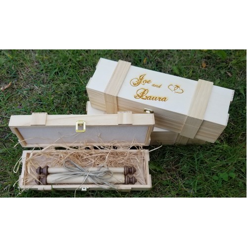 Home » Products » Scroll Accessories » Rolled Scroll Boxes » 8 1/2 x 11 Scroll Crate Box 8 1/2 x 11 Scroll Crate Box Price: $50.00 Availability: In Stock Available Options * Laser Engraved: --- Please Select --- No Yes (+$15.00) Name/Date/Event: Qty: Description Related Products (1) This box is a natural wood box with canvas lining. Personalize with laser engraving. 8 1/2 X 11 Rolled Scroll Certificate of Marriage $27.00 Add to Cart