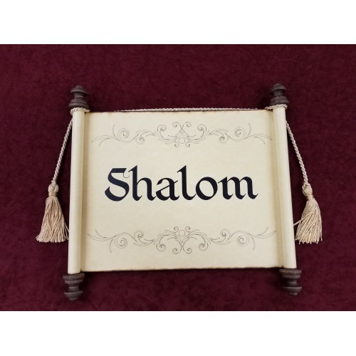 This Scroll Plaque comes printed on our classy gold parchment paper with your choice of color finials and tassel. This scroll can be hung on a wall with the classy tassel or display on an easel on any mantel or desk.